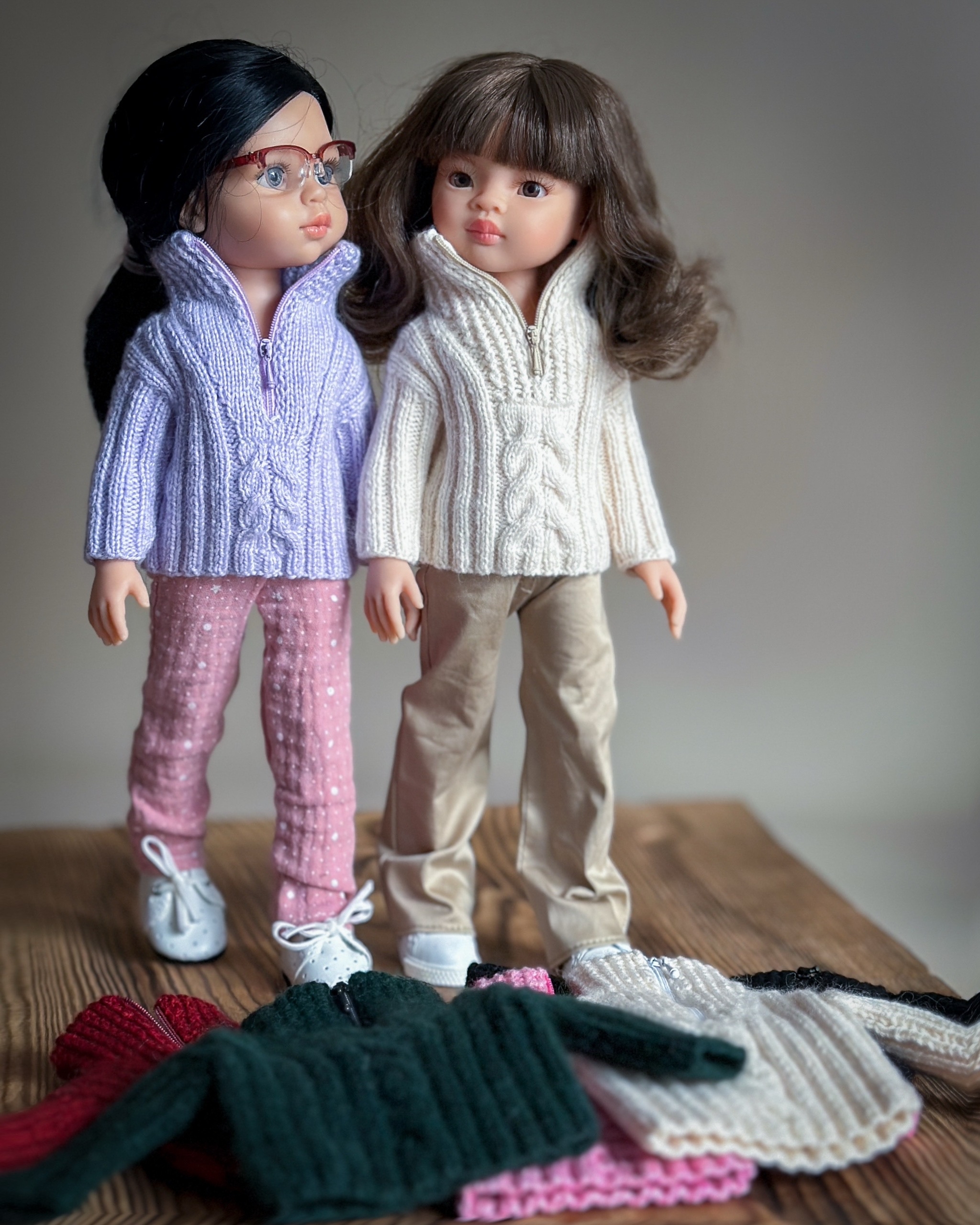 Джемпер вязанный для куклы Paola Reina 33 см, на молнии, молочый