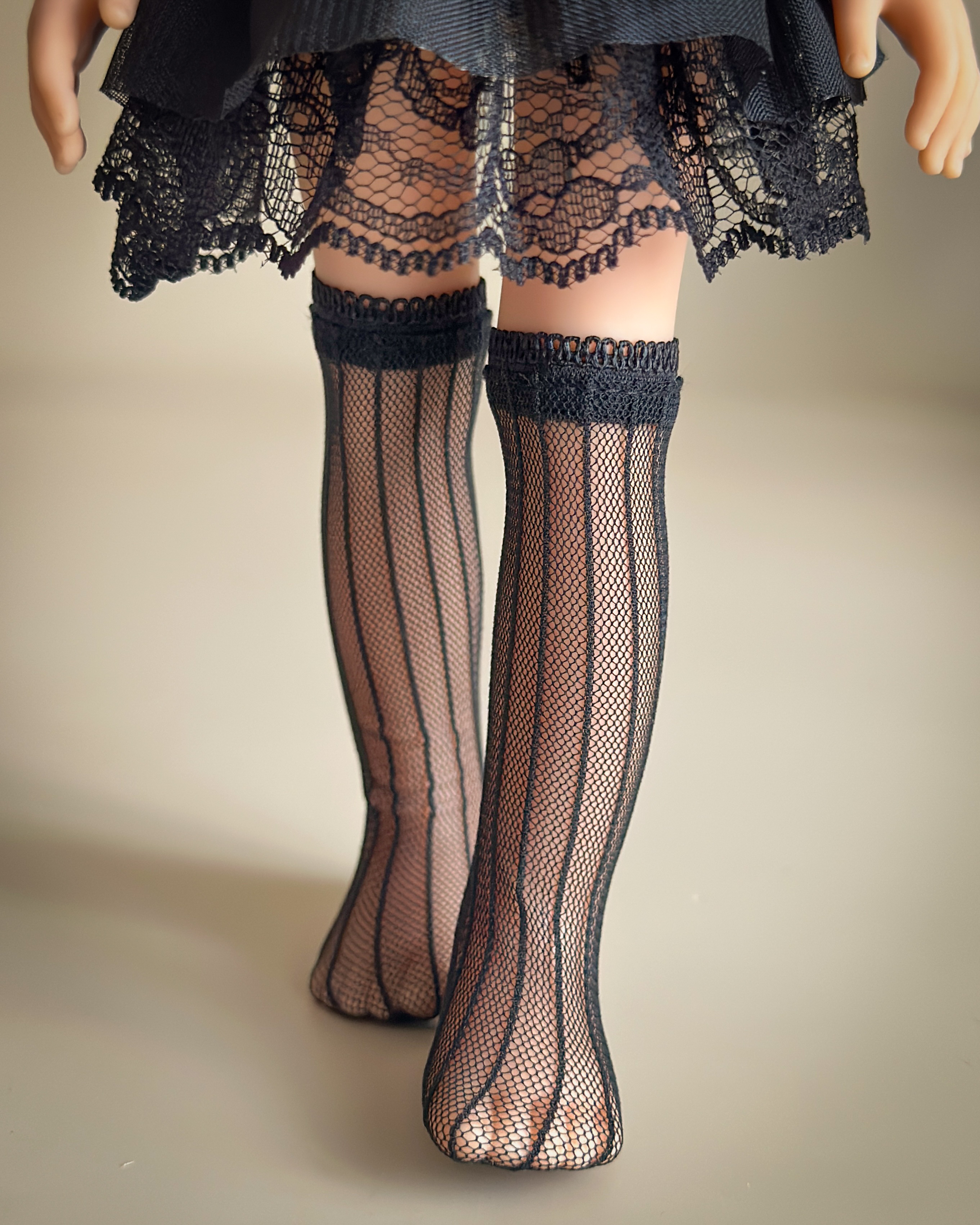 Завышенные гольфы для куклы Paola Reina 33 см, сеточка, черные в полосочку