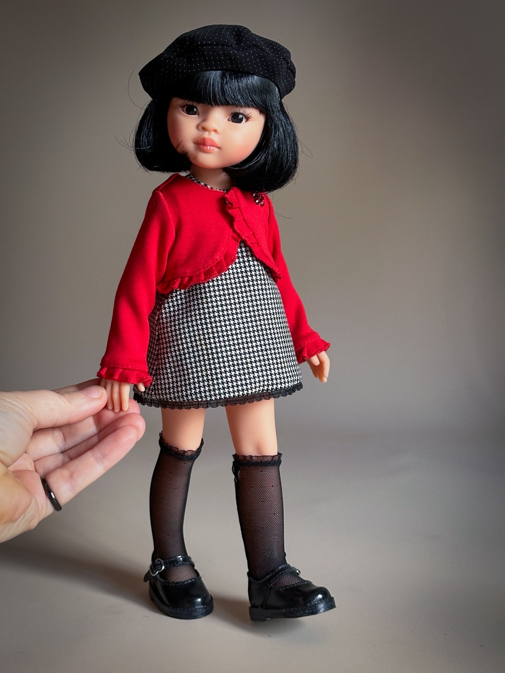 Комплект "Парижанка" на куклу Paola Reina из 4 предметов: Платье, болеро, берет, гольфы